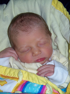 Around midnight on Saturday night, my water broke as we were getting ready for bed. Those of you who've had your water break, you know that sometimes it's a lot, sometimes it's a slow process. This time for me, it was a slow process, so we decided to still try to get a few hours of sleep. By 4 a.m. and losing more of my water, I decided to start getting ready to go to the hospital. I was so excited (and nervous) that I couldn't sleep anyway. By 6 a.m. we were able to get Tyler's dad over to watch the kids, and we got to the hospital. For a few hours I still wasn't having very big or consistent contractions so they induced me. After a few more hours, I slowly started dialating, and then all of a sudden, I was ready!! After I got my epidural, I was a very happy camper, just like I was with my son....but the nurses all thought I was so funny because I was so happy and giggling the whole time (even without them giving me any of those drugs that make you loopy!!). I get on a natural high when I know my baby is coming, what can I say, I was excited!! Well the doctor hadn't arrived yet and every time I giggled the baby was trying to grace us with her patience, so the nurses told me I really needed to try not to laugh til the doctor got there!! Once the doc arrived, the baby started coming out with one giggle, and with one push she was out!!! WOW!!